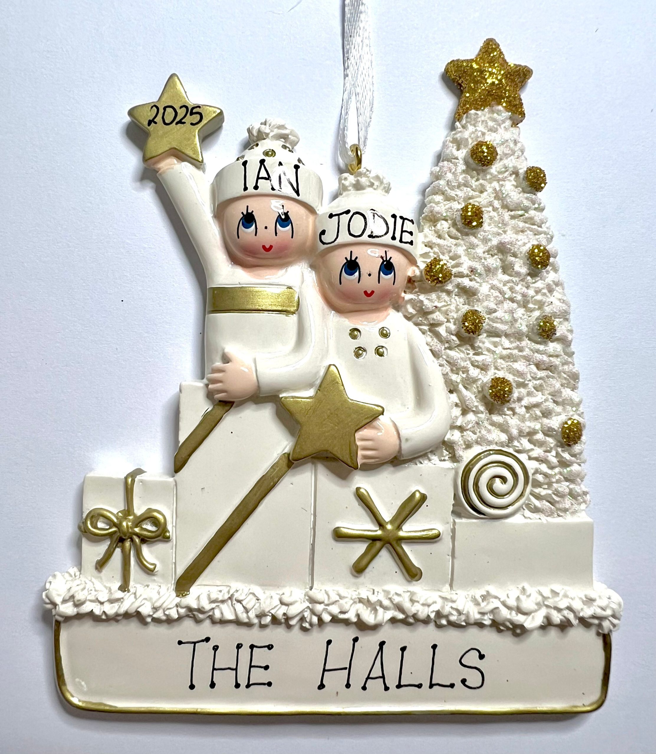 Add to WishlistAdd to CompareNew ornament for this year is this adorable white ornament featuring gold & glitter baubles & star on the Christmas tree.